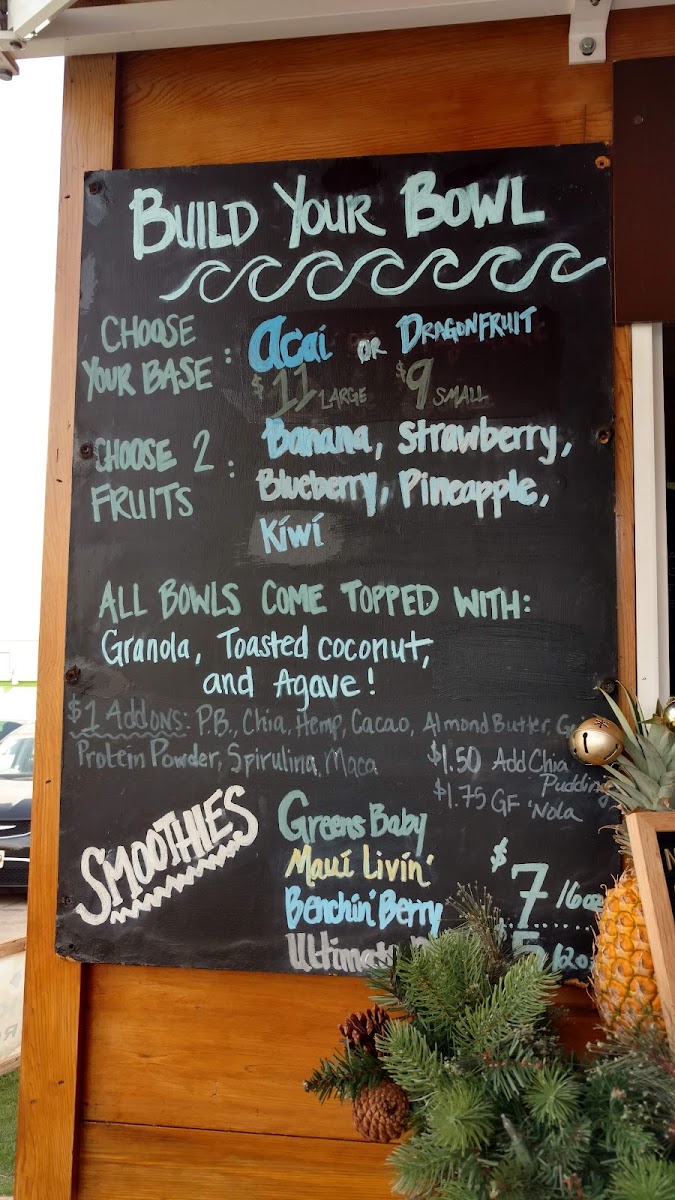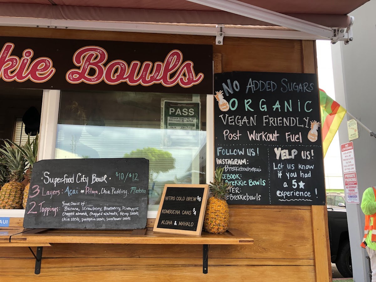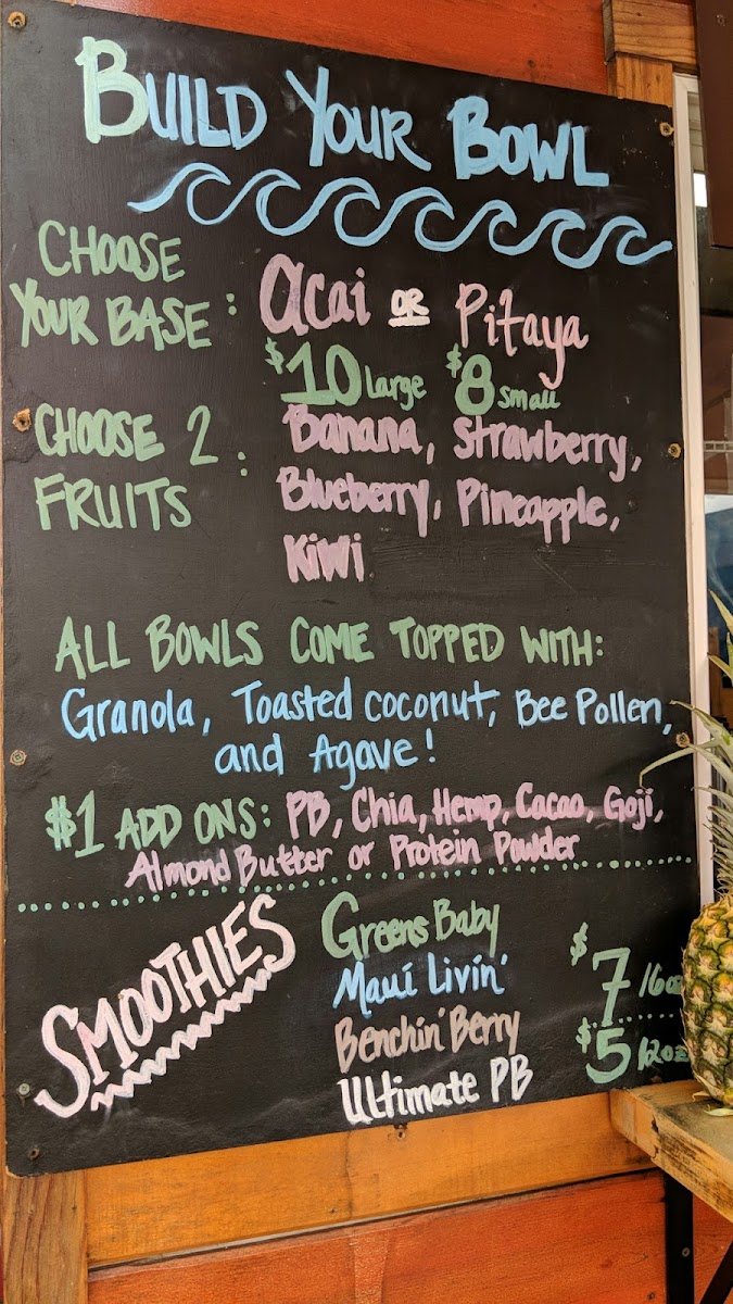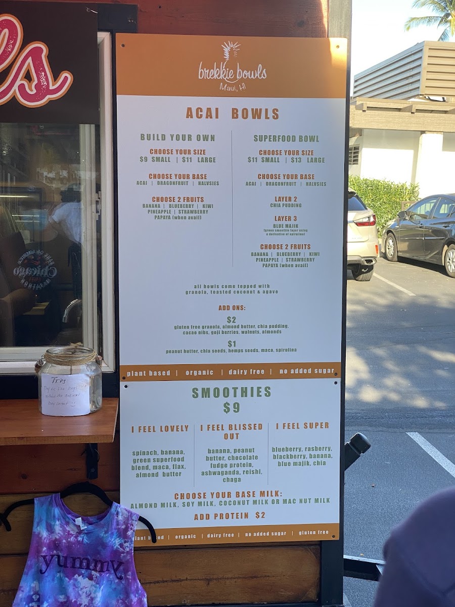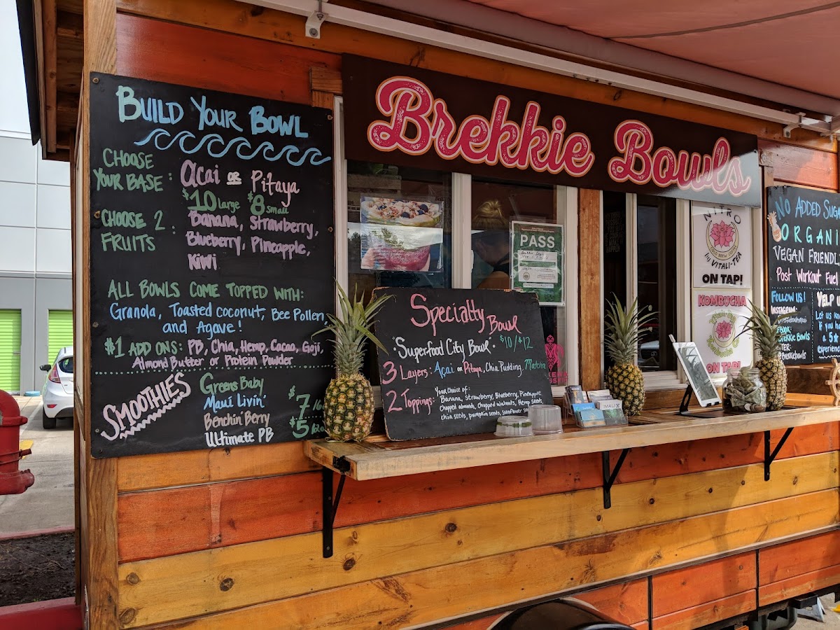 The menu at Brekkie Bowls in Wailea offers a delightful range of healthy and refreshing options, perfect for breakfast or a midday pick-me-up. For those craving a wholesome, customizable treat, the Build Your Own Acai Bowl lets you choose your preferred ingredients, while the Superfood Bowl provides a nutrient-packed blend of acai with an assortment of superfoods to boost your energy. If you're in the mood for something smooth and revitalizing, their smoothie selection won’t disappoint. The I Feel Lovely smoothie combines a refreshing mix of fruits, the I Feel Blissed Out smoothie offers a calming blend, and the I Feel Super smoothie packs a punch with its energizing ingredients. Each dish and drink reflects the restaurant's focus on nourishing ingredients, making it a great choice for anyone seeking a delicious yet healthy meal in a relaxed, tropical setting.